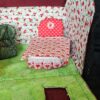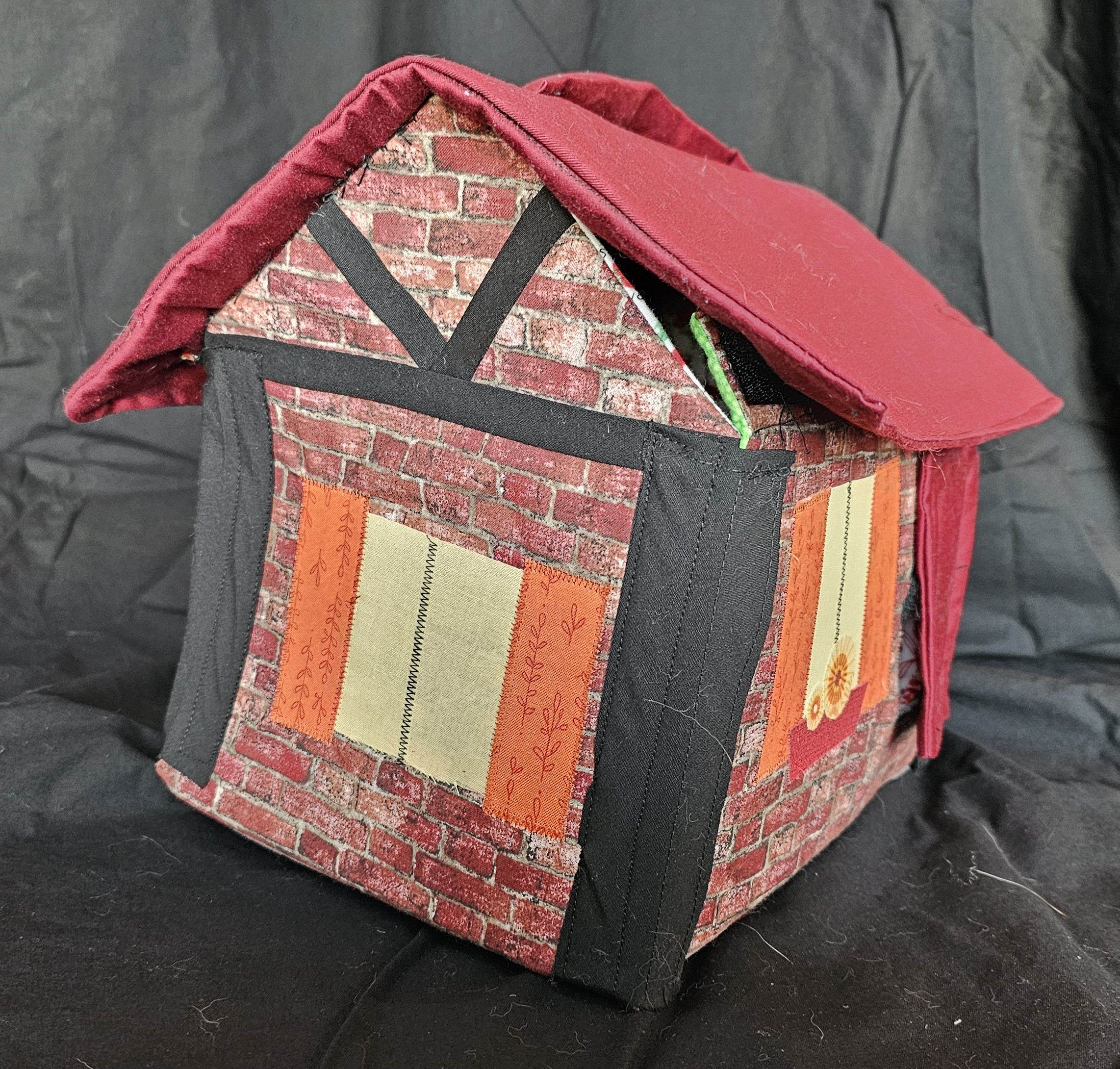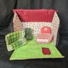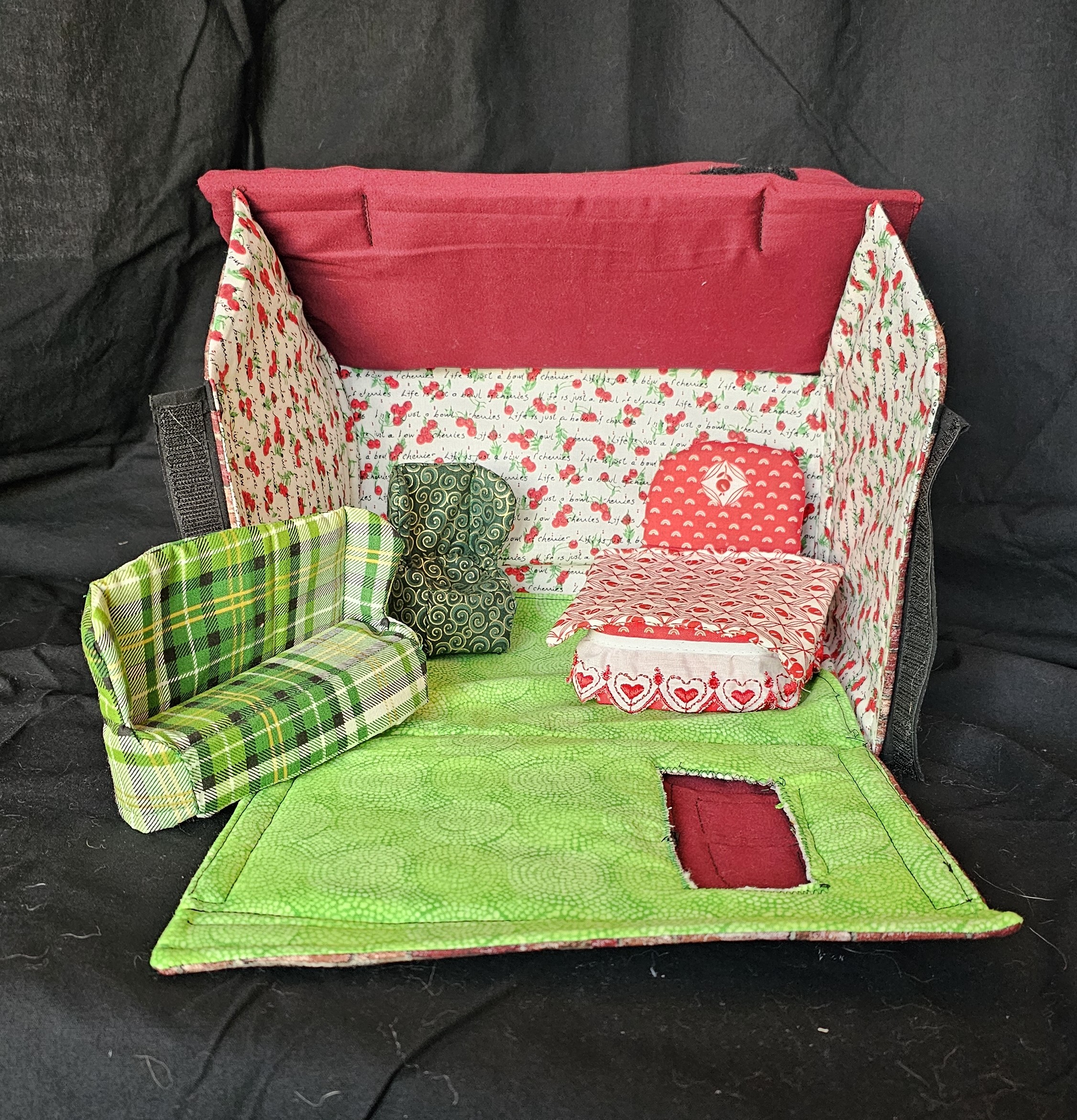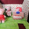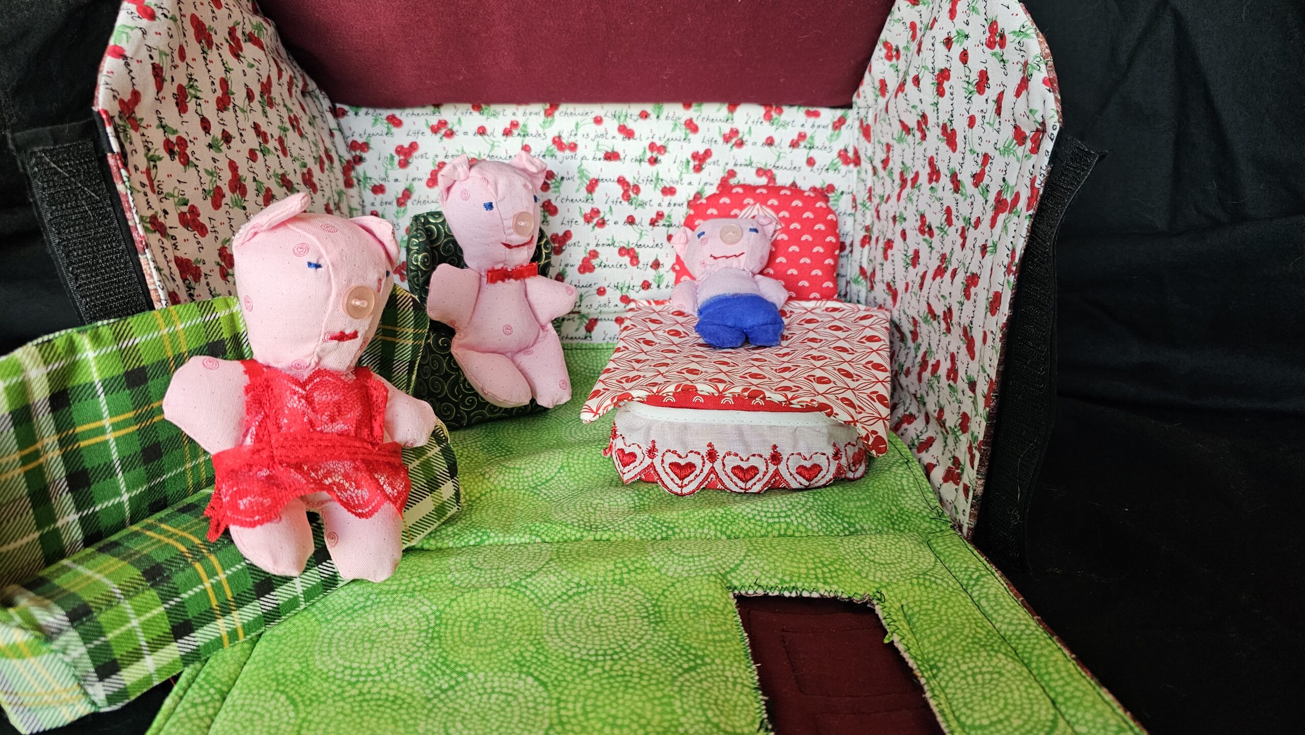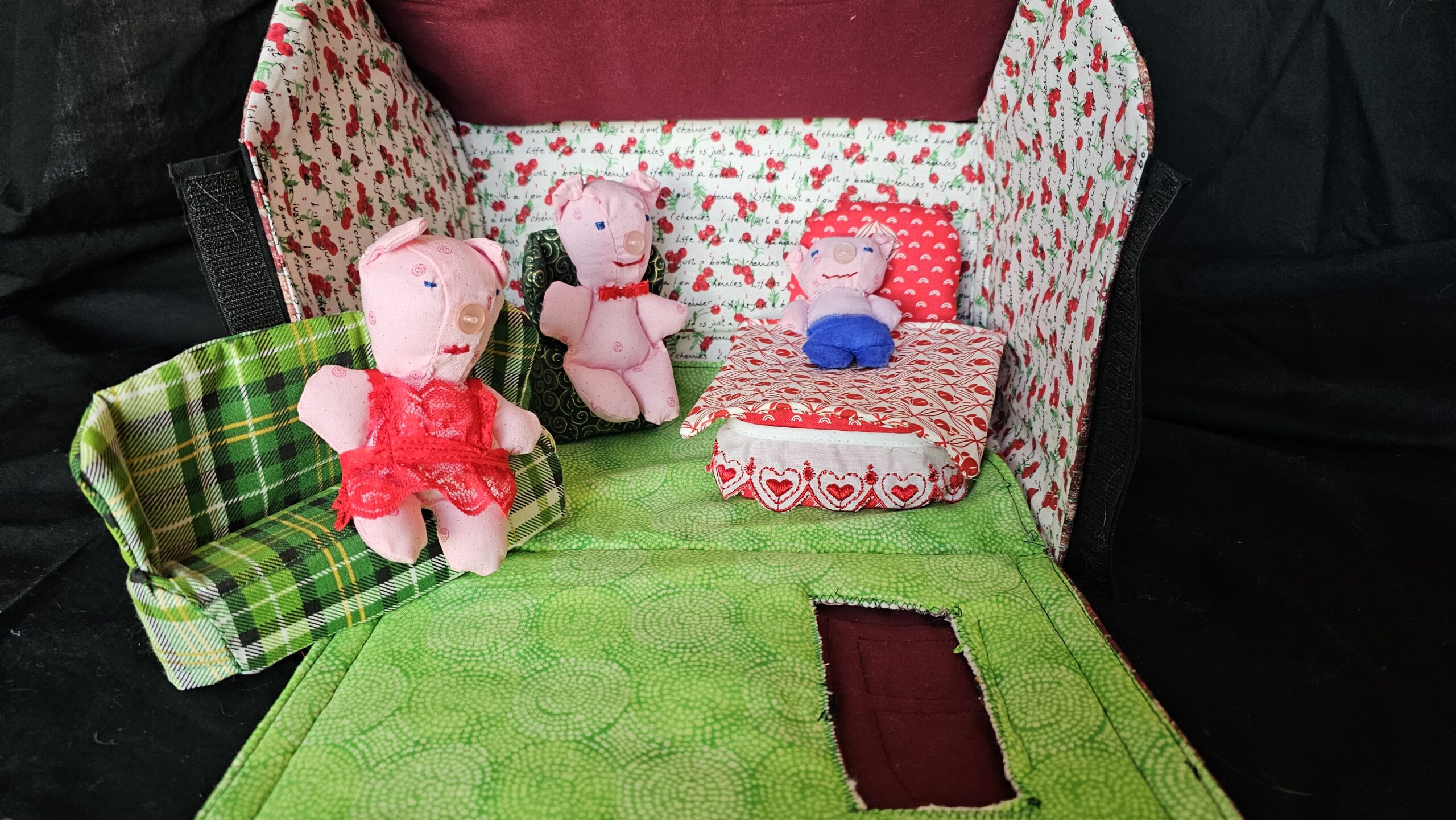 A portable, soft dollhouse with a family of pink pigs who love their cozy brick home!